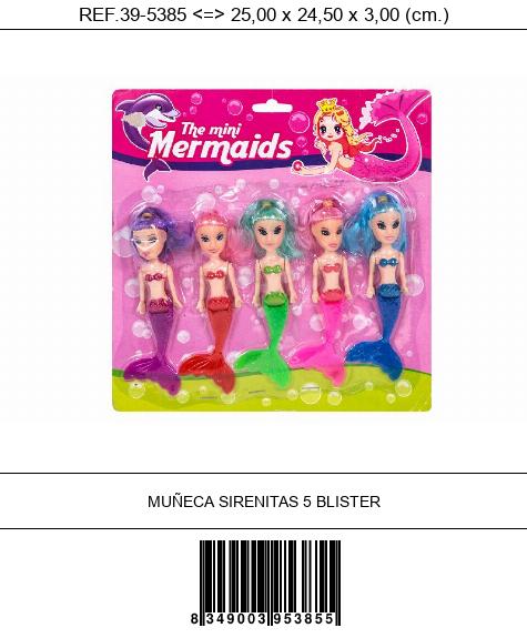 ¡Sumérgete en un mundo de fantasía con este blister de 5 sirenitas de colores surtidos!