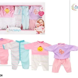 ¡El set de ropa infantil perfecto para cuidar y vestir a tu muñeco bebé! ¿En qué consiste? Este completo set de Colorbaby’s incluye 4 conjuntos de ropa para muñecos bebé de 42 cm. Diseñados en colores suaves y con estampados adorables, son perfectos para que los peques jueguen a cambiar de ropa a su muñeco según la hora del día o la historia que estén viviendo. ¡Podrán prepararles para dormir, salir de paseo o inventar mil situaciones diferentes!