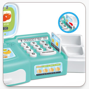 Con efectos de luz y sonido que hacen la experiencia aún más realista, los niños podrán escanear productos, cobrar con tarjetas de crédito o manejar monedas mientras desarrollan su imaginación y aprenden jugando.