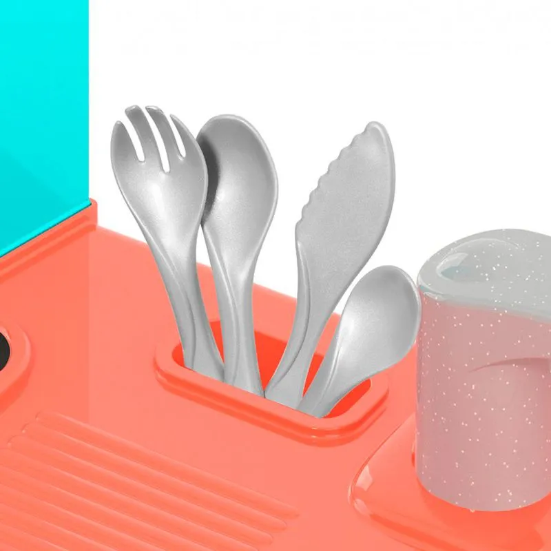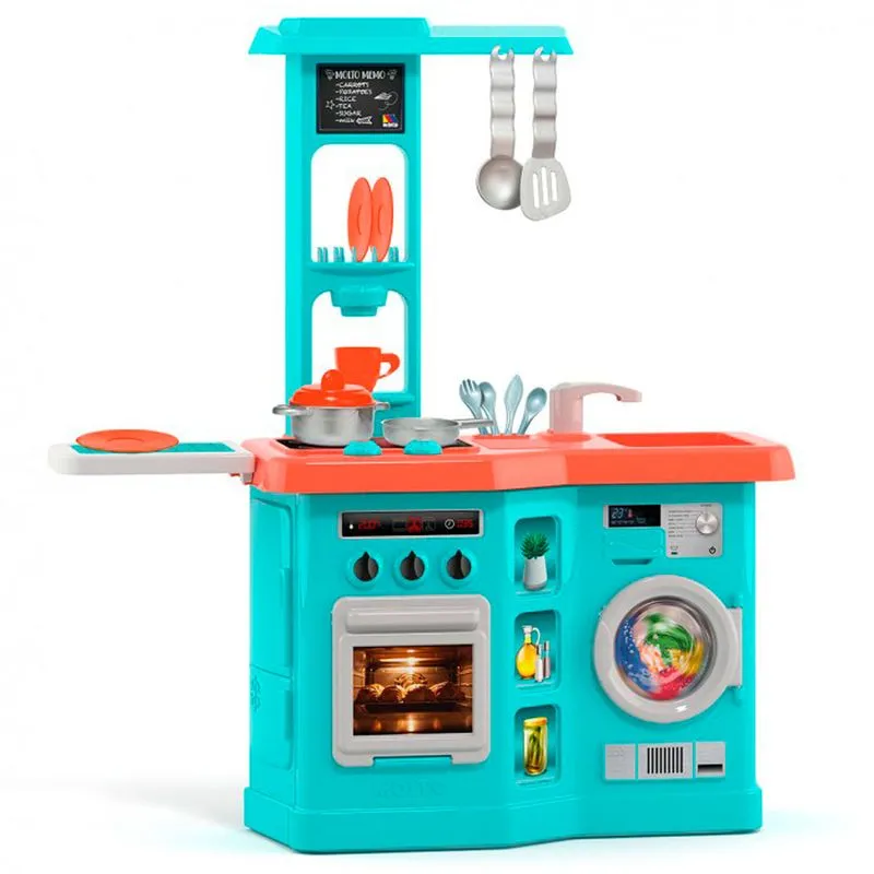 Completa cocina que inlcuye horno, campana, lavadora, mesa y un set de 12 accesorios. ¡Perfecta para que los peques preparen sus comidas! Fomenta la imaginación, habilidades sociales y lenguaje mientras juegan a ser chefs.