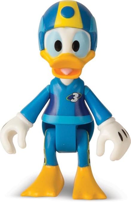 Figura articulada del entrañable pato Donald. Donald viene preparado para la carrera con su traje de piloto. También trae una bandera de meta como accesorio.