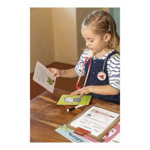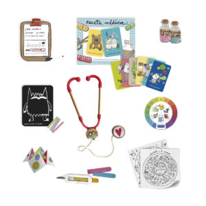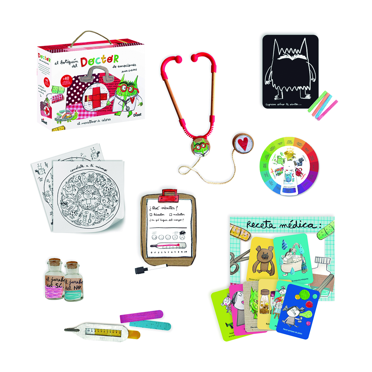 Incluye más de 30 herramientas interactivas como un estetoscopio de madera, gafas, termómetro emocional y tarjetas de colores para medir la intensidad de cada emoción.