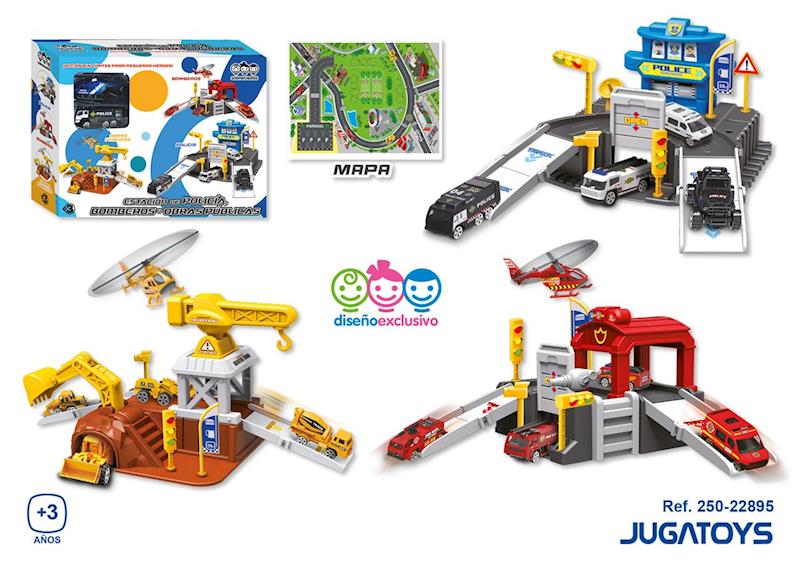 Estación de policia, bomberos u obras públicas, incluye 1 coche y 1 helicóptero.