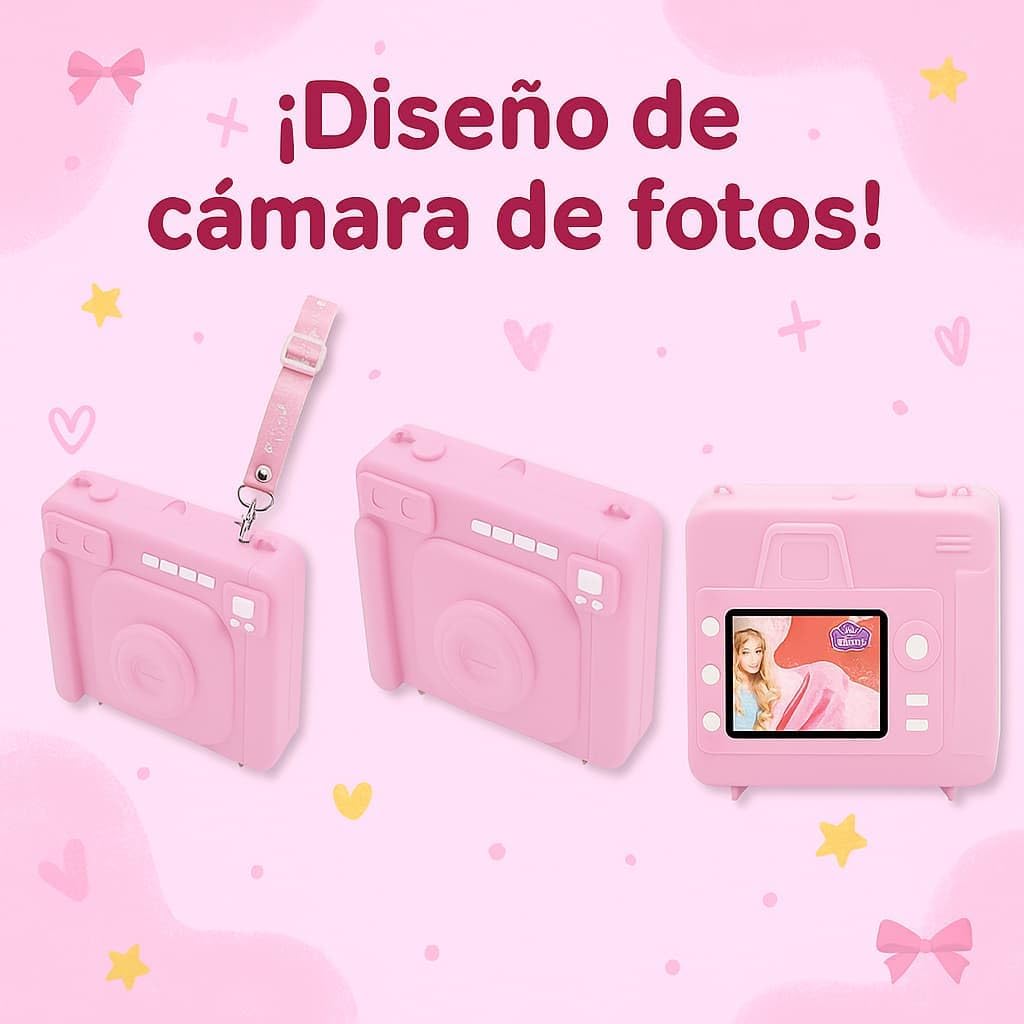 - 📸 Diseño original con forma de cámara de fotos