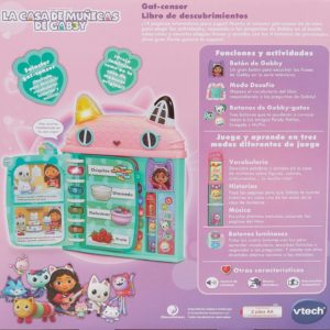 - El libro incluye 4 botones luminosos que narran la historia con la voz original de Gabby, haciendo la experiencia aún más emocionante.