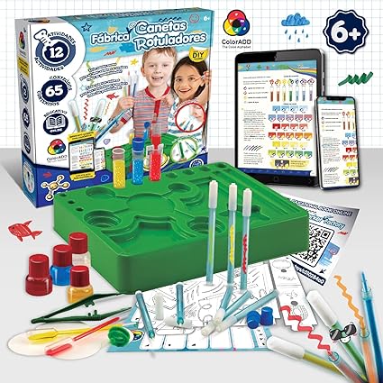 Juego para niños con laboratorio de rotuladores con 65 contenidos esenciales para hacer muchas actividades.