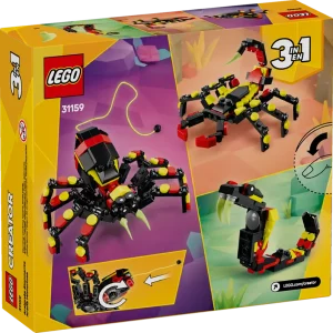 Los niños y las niñas a partir de 7 años descubrirán criaturas fascinantes con el juego Fauna Salvaje: Araña Misteriosa (31159). La colorida araña tiene 8 patas articuladas, grandes dientes y una telaraña amarillo neón que le sale del abdomen paracolgarla de un ladrillo LEGO® y jugar con ella o exponerla.