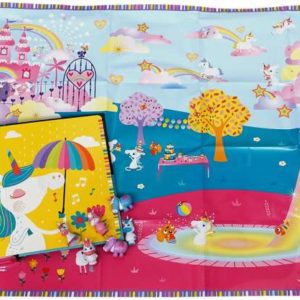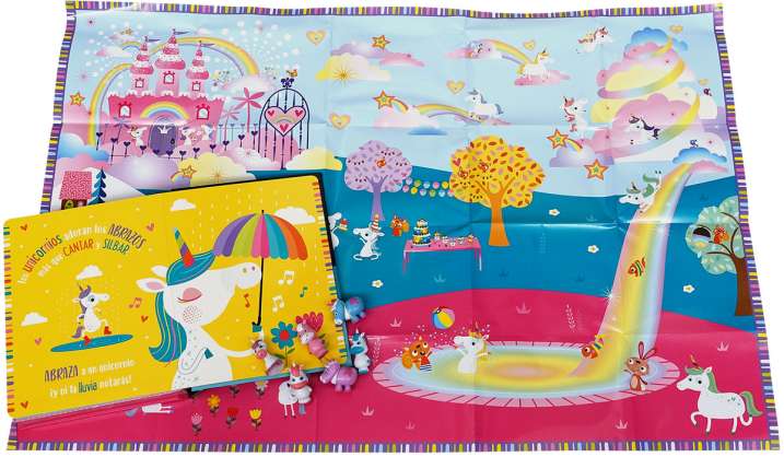 A los unicornios les encantan los abrazos, la DIVERSIÓN y los JUEGOS. ¡Despliega el tapete y descubre un escenario de fantasía para jugar con ellos!