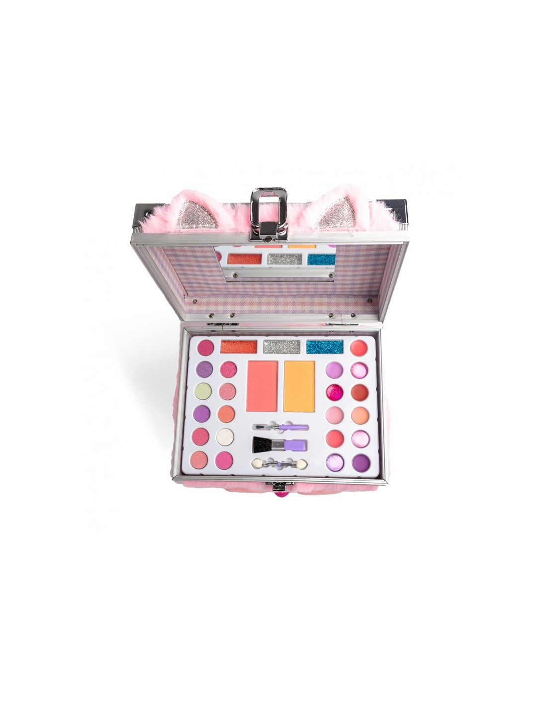 Descubre el Meowgical Beauty Case de la colección Lulu & Duki. Este adorable estuche incluye 11 sombras de ojos, 11 lip glosses, 3 sombras de ojos en crema con glitter, 2 rubores, 2 brochas y 1 aplicador. Perfecto para que las pequeñas se diviertan jugando y creando looks mágicos mientras se sienten acompañadas por sus dulces amigos gatitos. Todo lo que necesitan para brillar está en este encantador estuche.