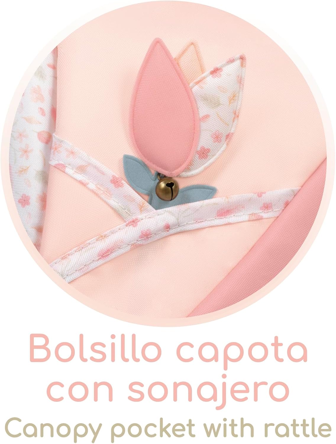 - Incluye bolso a juego, colchón, bolsillo capota con sonajero para mayor diversión y bolsillo cubre que aporta un toque aún más bonito y práctico.