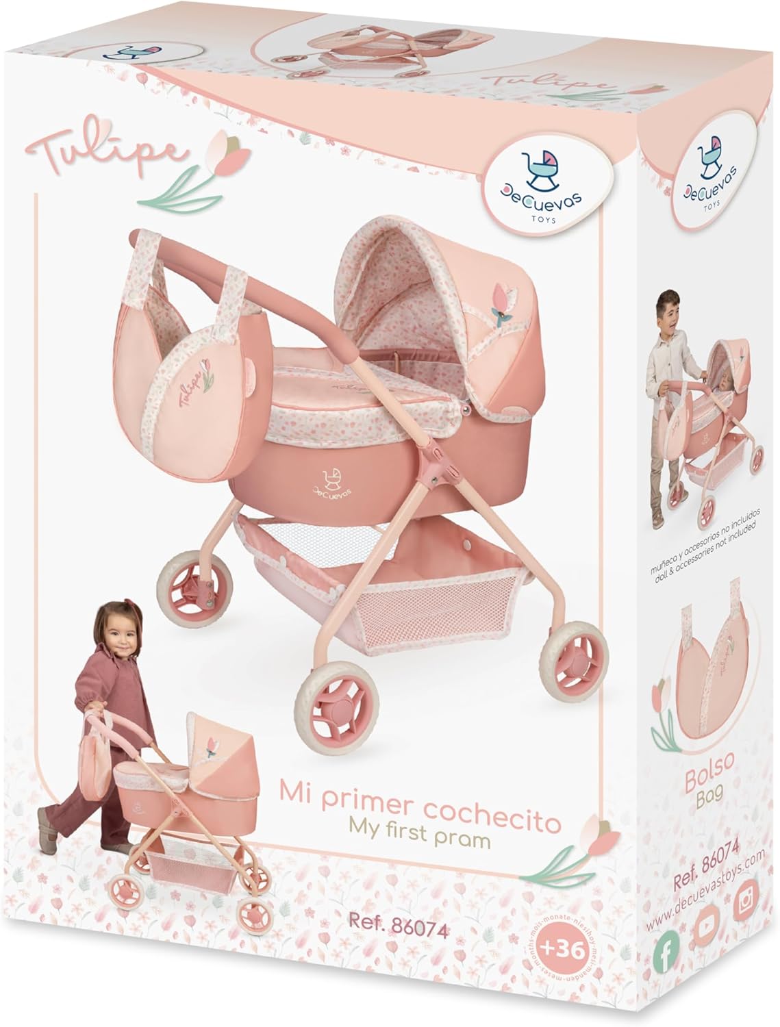 Este primer cochecito de muñecas Tulipe de DeCuevas es perfecto para que los más peques lleven a sus muñecas a todas partes y jueguen a cuidar con mucho amor.