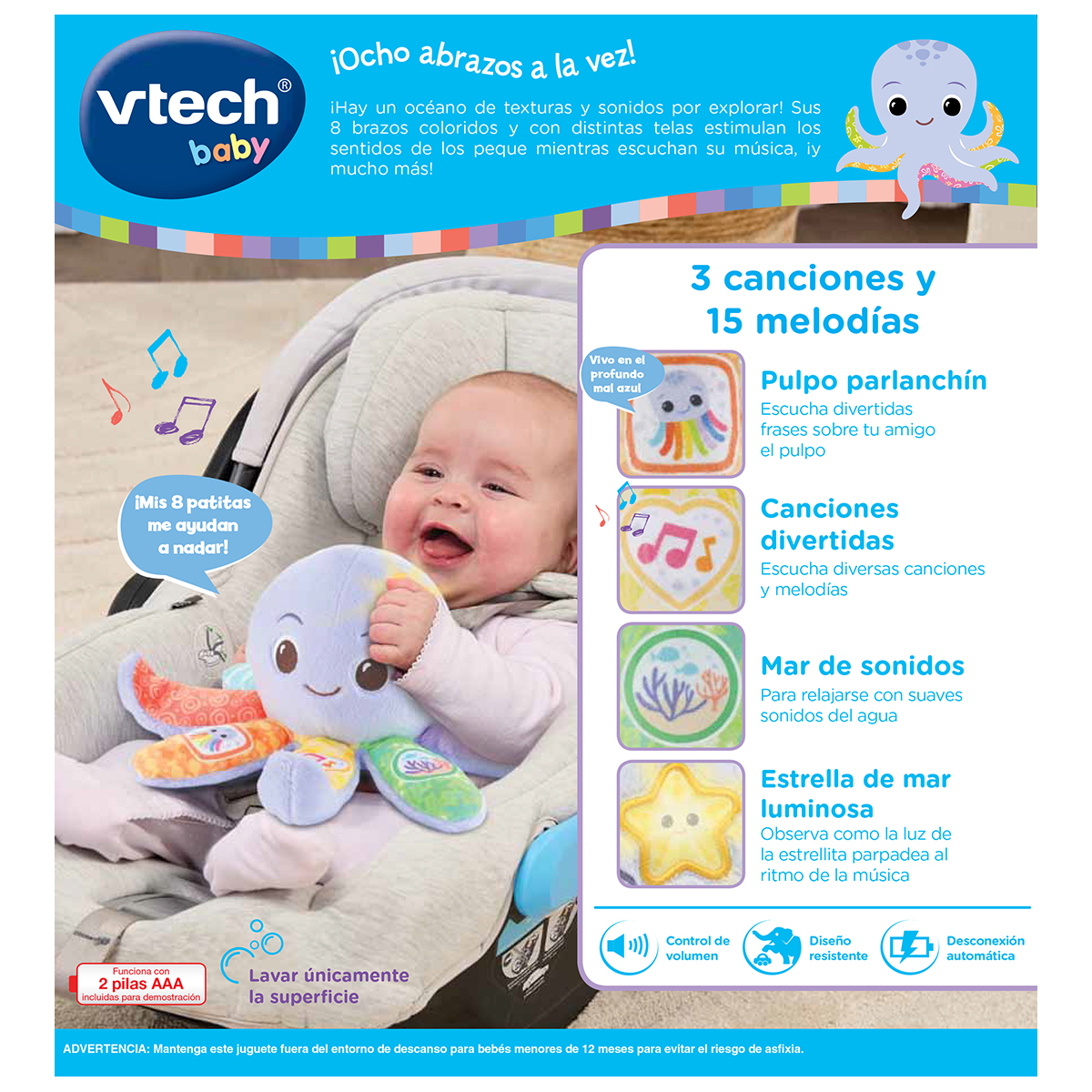 - Además, la diversión continúa con 3 canciones y 15 melodías que llenan el ambiente de alegría y dulces sonidos. Ideal para crear un entorno relajante o animado según el momento del día.
