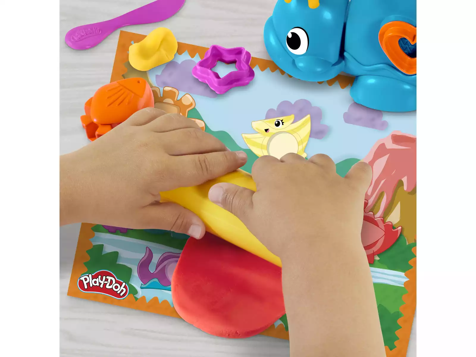 ¡Es la hora de una fiesta de dinosaurios Formas y Colores de Play-Doh! Este juguete preescolar incluye divertidas actividades con un adorable amigo dinosaurio. Corta y estampa diferentes formas con los accesorios Play-Doh.