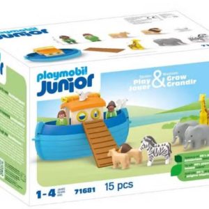 ¡Que barco tan enorme! Noé y su mujer construyeron unarca, y aquí hay sitio para todos los animales. Con este set, niños y niñas aprenderán la impresionante historia del Arca de Noé y conocerán la diversidad del reino animal jugando y divirtiéndose. Cuando empieza a llover y el agua sube, Noé y su esposa suben a los animales a su arca por parejas. Uno a uno, los animales suben al barco por la rampa. ¿Cómo caben las jirafas bajo el techo? Heroicamente, Noé y su mujer salvan a todos los animales, pero ¿están las parejas completas? ¿Dónd encontrarán ahora un nuevo hogar los huéspedes del barco? Diversión sobre la marcha: El arca es una práctica caja en la que caben todos los accesorios del juego. Con el asa de transporte, niños y niñas podrán llevar el arca y sus habitantes a todas partes.