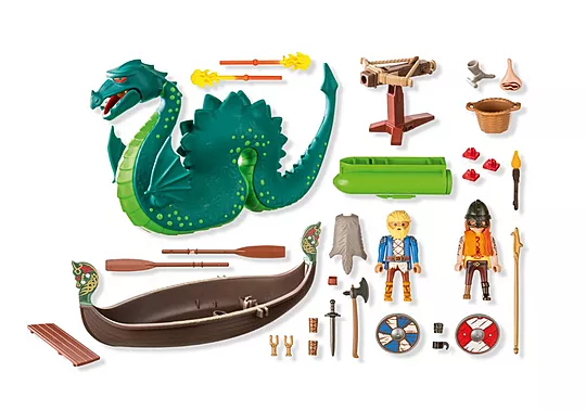 ¡Prepárate para épicas aventuras vikingas! El bote de remos vikingo tiene capacidad para dos figuras PLAYMOBIL, totalmente equipadas con armas para batallas llenas de acción contra la serpiente marina. Repleto de accesorios como un cuerno para beber, una antorcha e incluso un jamón para los festines. Embárcate en atrevidos viajes y crea historias legendarias con este detallado producto PLAYMOBIL.