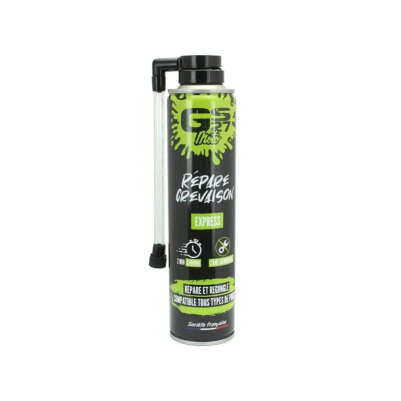 Spray anti pinchazos de la marca GS27 para reparar el neumático de tu moto y scooter.