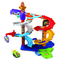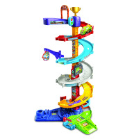 Y en el Modo Gran Eslalon, la torre se eleva al máximo para que los vehículos desciendan girando por los tramos en espiral, ¡como en una auténtica competición llena de adrenalina!