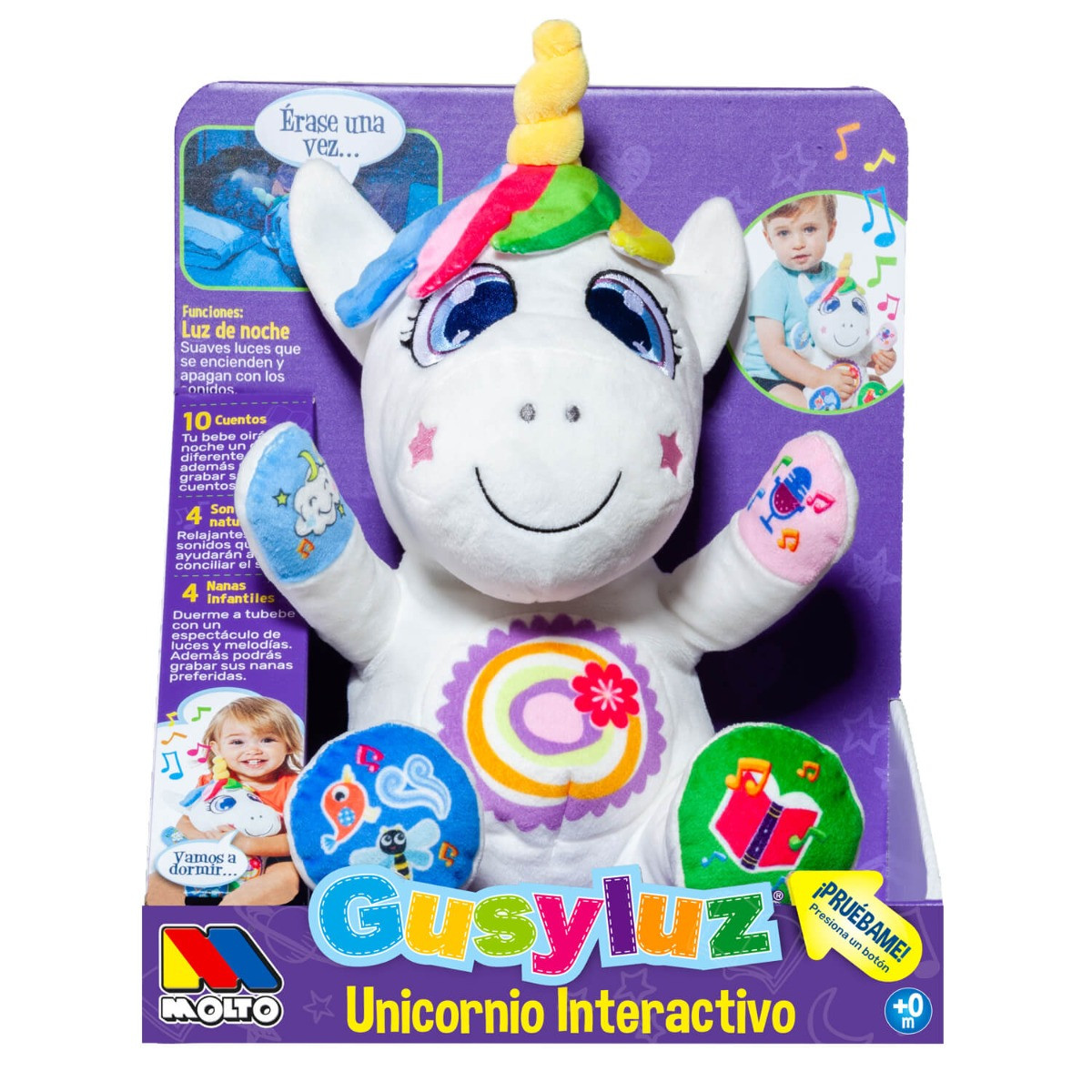Gusy Luz es un adorable unicornio interactivo que acompaña a los peques en momentos de juego, aprendizaje y relajación.