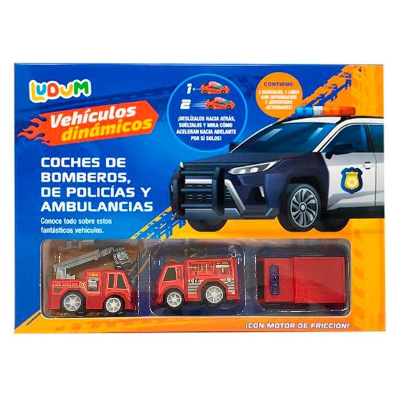 Maletín vehículos dinámicos. Juega y diviértete con este pack de tres coches y aprende un montón de cosas sobre vehículos gracias al libro que encontrarás en su interior. Contenido: 3 vehículos, 1 libro con información y divertidas actividades.